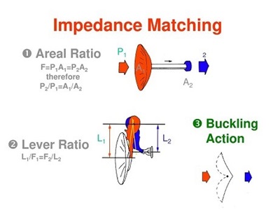 bottom of the last ossicle (stipe) through a lever function, and in this way the energy loss/sound pressure loss caused by the transfer of sound from air to liquid is compensated. Therefore, in fact, the function of the middle ear is to match the air resistance of the outer ear and the resistance of the inner ear fluid. In fact, the function of the middle ear causes sound energy to enter the inner ear fluid without loss from the outer ear space.